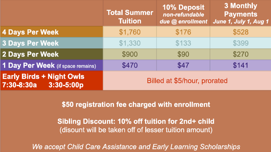Daily Group Activities include nature-based lessons, art, math and literacy integrations, + hands-on experiments. Large chunks of free play allow children to develop social emotional and conflict resolution skills, critical thinking, teamwork, creativity, confidence, wonder, resilience, and so much more!